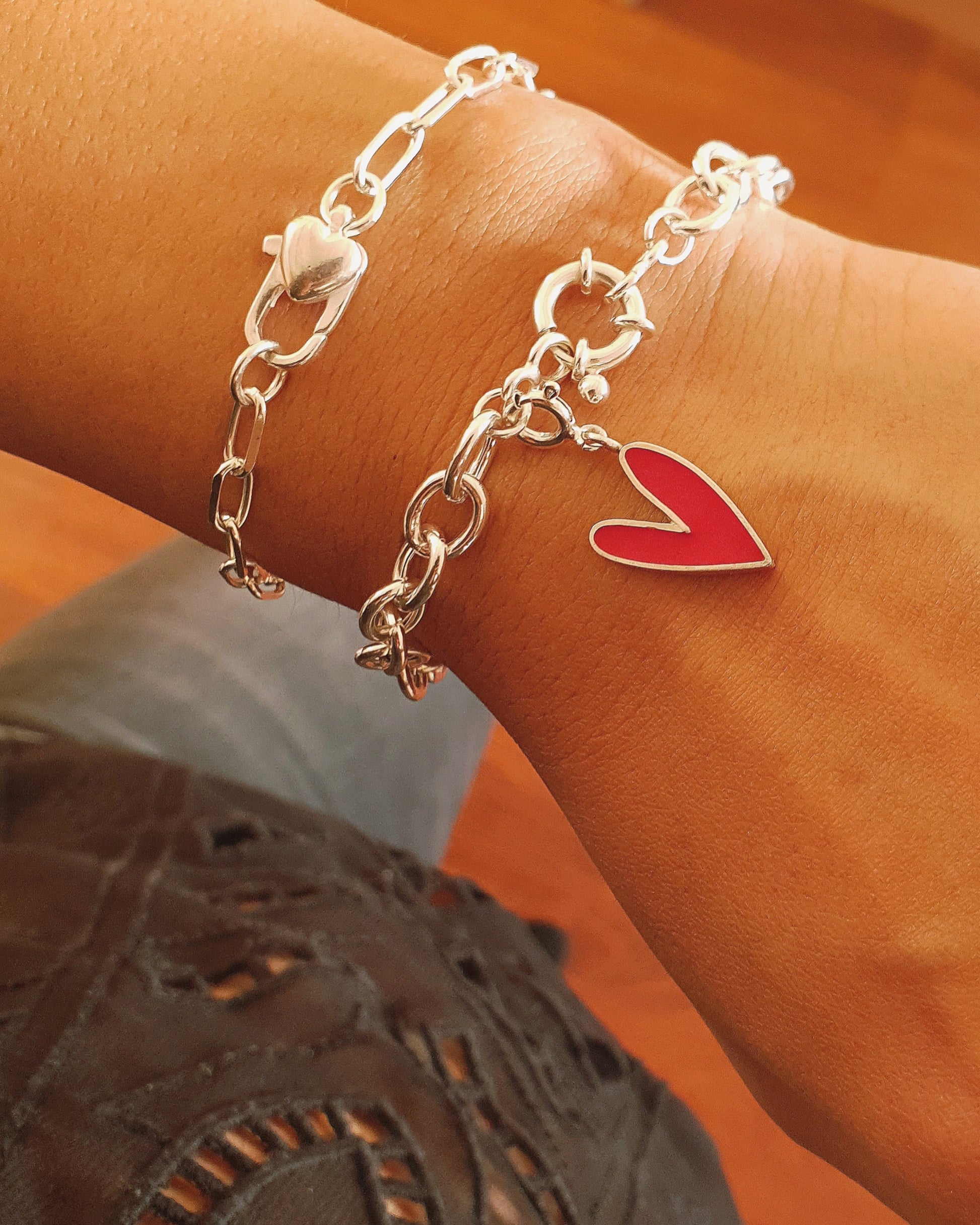 ¡Lleva contigo siempre el amor con la Pulsera Amorett ! Esta hermosa pulsera de plata cuenta con un pequeño dije de corazón con detalle de color en resina . Es perfecta para darle un toque de alegría y enamoramiento a tu look, ¡ideal para cualquier ocasión!